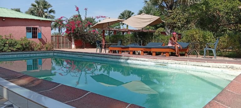 The garden and pool of Afropolis are a paradise for tourists with a sense for the beauty of the nature The Gambia…